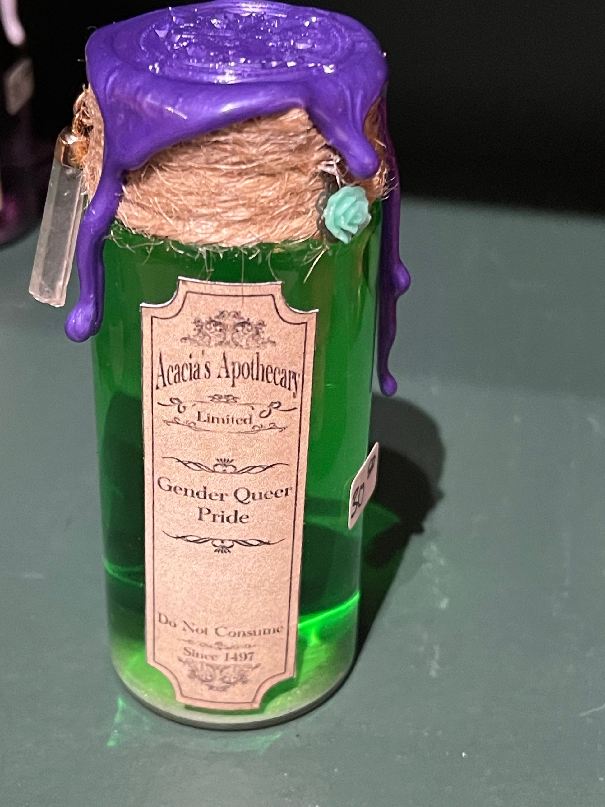 How to use: Shake well (holding it upside down while shaking seems to work best to disturb the settled glitter) and turn upside down to reveal your roll on the d20. All potions have been float tested to ensure every dice is visible when flipped.